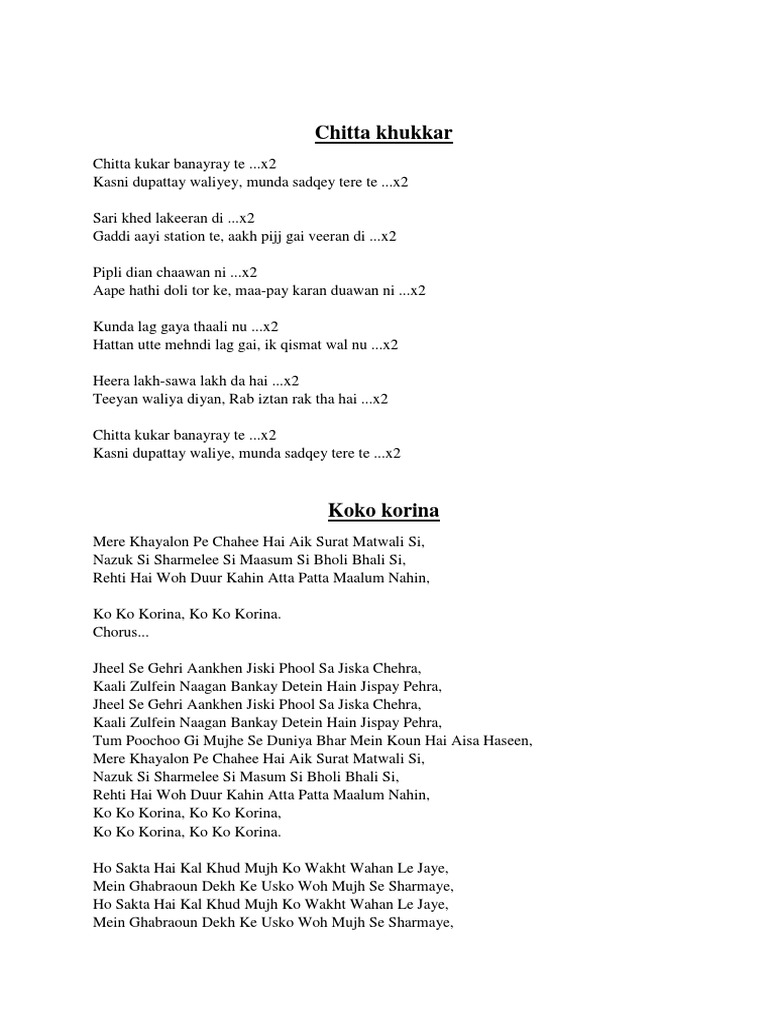 پیار مجھسے جو کیا تھمنے pyar mujhse jo kiya tumne Urdu. A lot of South Asians arent fluent in reading Urdu Hindi and Panjabi so here are a bunch of shaadi song lyrics that weve transcribed into Roman Urdu Hindi and Panjabi. Gora Rang Na Kissi Nu Raab Devay.